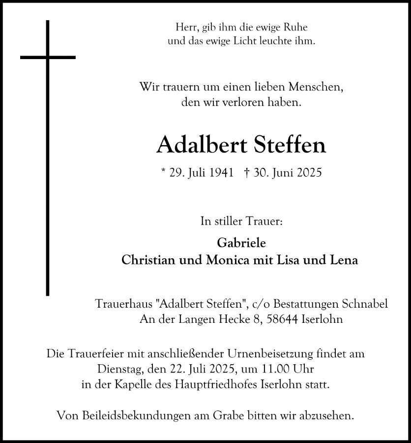 Sehen Sie hier die Termine der Abschieds- und Trauerfeierlichkeiten.