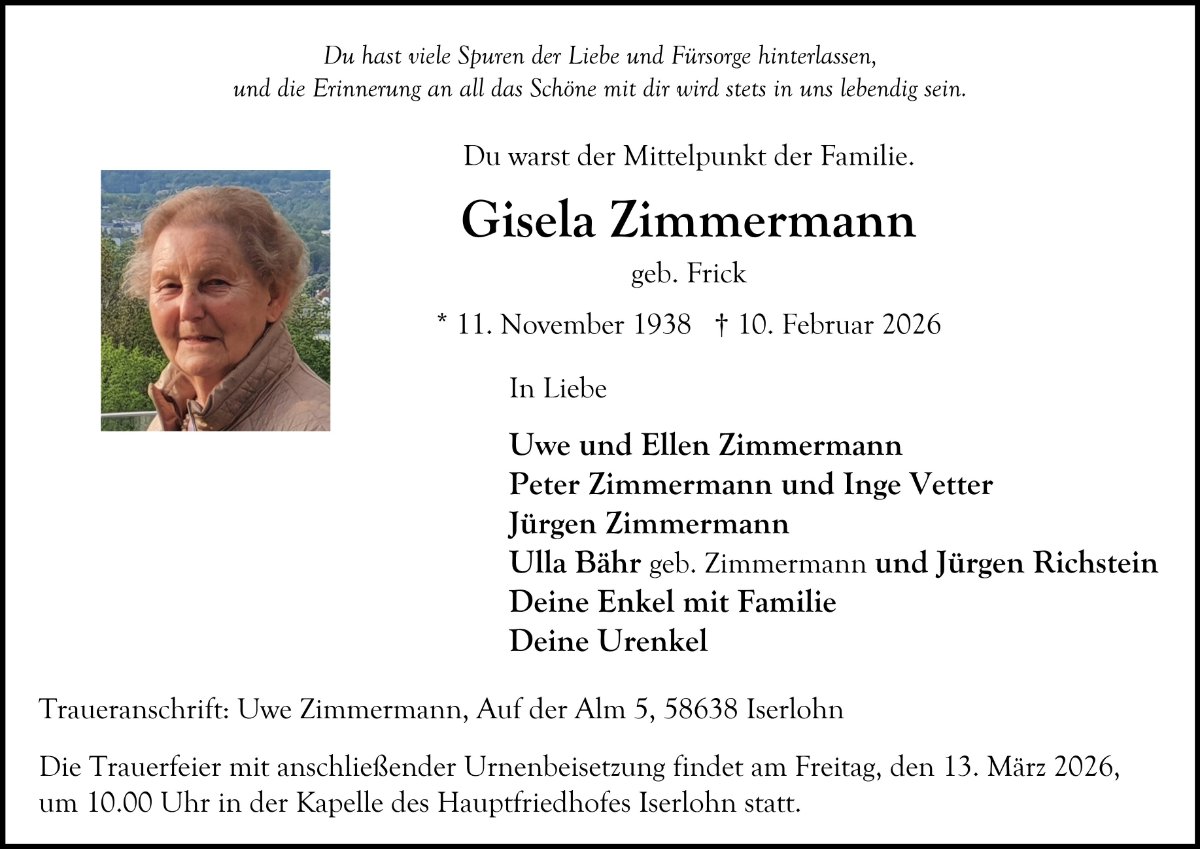 gestorben am 10. Februar 2026 in Iserlohn