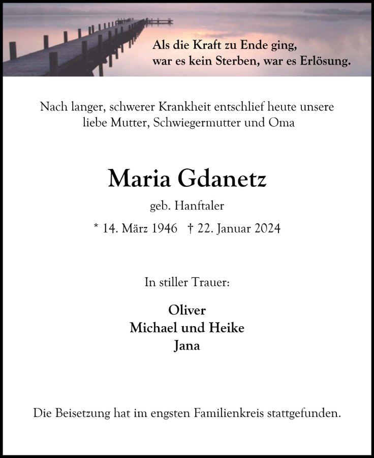 Maria Gdanetz geb. Hanftaler